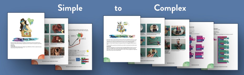 The Invent to Learn Guide to the micro:bit invites learners to create dozens of simple-to-complex, open-ended, hands-on projects using one or more micro:bits, upcycled junk, and craft supplies. Microsoft’s MakeCode block-based programming environment is used to bring your interactive inventions to life.